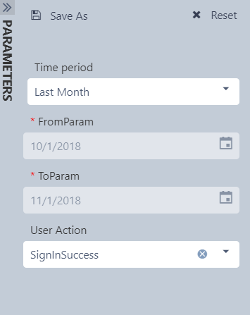 Time periods are pre-defined options that select a certain period of time in two separate date-time parameters (fields) configured as From and To fields. For example: This year time period would select 1st of January this year in the From field and the current date (today) in the To field.