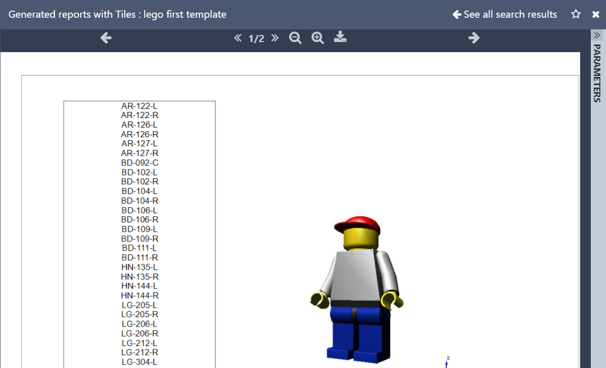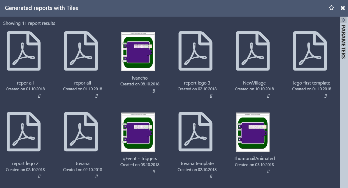 The Parameters panel for CM4D type of reports contains search parameters which are used to find subset of pre-generated PDF files (reports) that match the search conditions. Files can be searched based on: