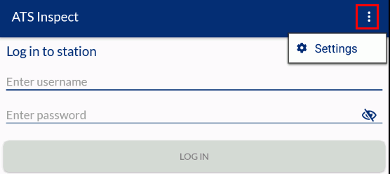 Open the settings by tapping on the three dots in the upper right corner of the login screen. Tap the Settings item in the menu.