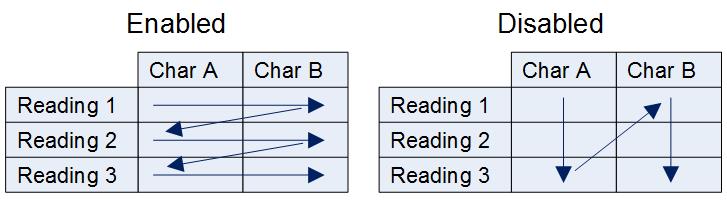 Enable or disable the Cycle through Characteristics checkbox to change the order in which characteristics are recorded as follows: