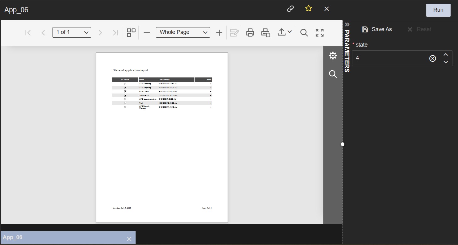 If the same report has already been saved in user's tab state, it opens in the same tab only with the new parameters and it runs automatically.